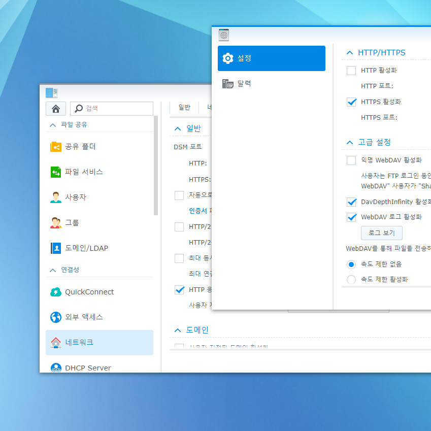- 제어판 > WebDAV > HTTP/HTTPS --> HTTPS 활성화 포트 별도 지정