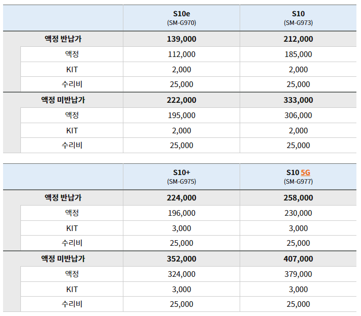 최근 추가된 S10 5G 모델 (다른 s10은 모름) 은 액정 단품만 수리가 가능하다고 합니다.