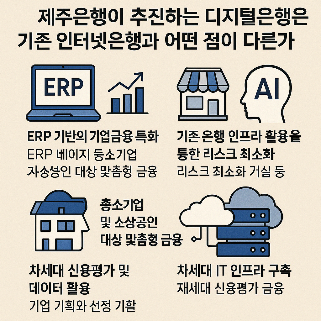 제주은행이 추진하는 디지털은행은 기존 인터넷전문은행과 여러 측면에서 차별화된 전략을 추구하고 있습니다.