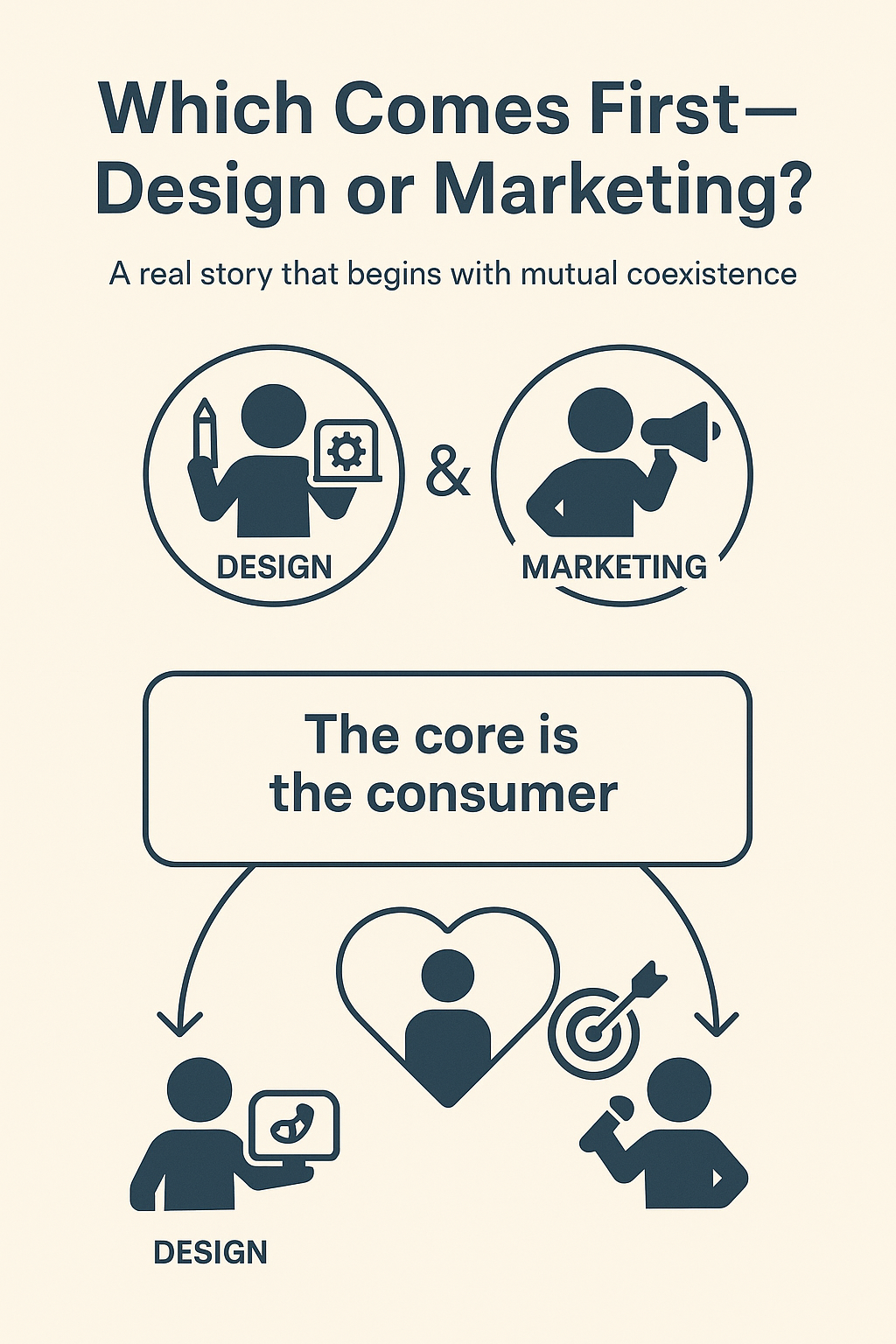 - Asking whether design or marketing should come first misses the essence.